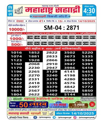 Maharashtra 4.15PM Lottery Result 14/10/2025
