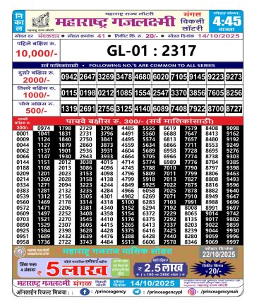 Maharashtra Gaj Laxmi Lottery Result 14/10/2025