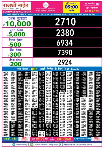 Rajshree Night Lottery 9PM Result 26/11/2025