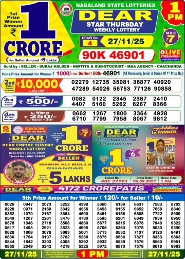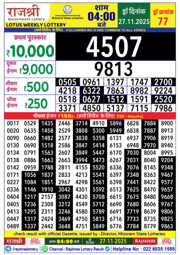Rajshree Lottery 1PM Result Today 27/11/2025