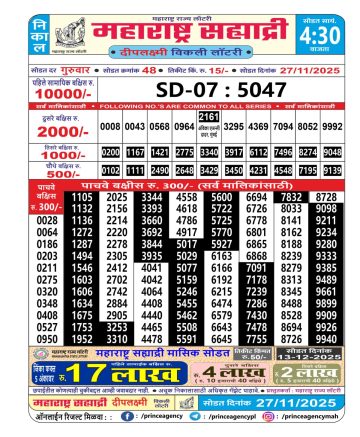 Mahrashtra Sahyadari Lottery Result 27/11/2025