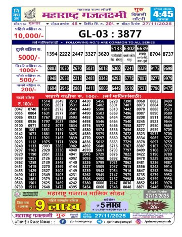 Maharashtra Gaj Laxmi Lottery Result 27/11/2025