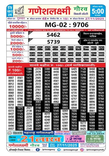 Maharashtra Ganesh Laxmi Lottery Result 27/11/2025