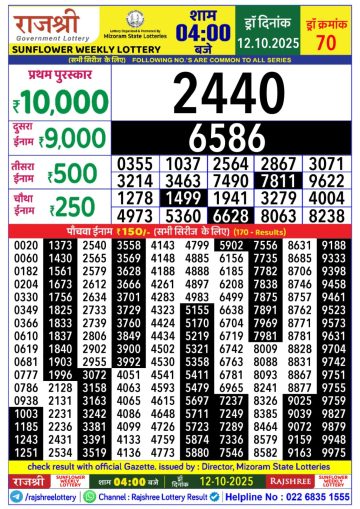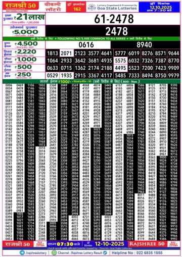 Rajshree 50 Lottery 7.30PM Result 12/10/2025