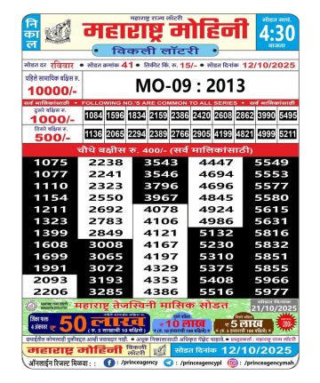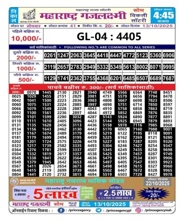 Maharashtra Gaj Laxmi Lottery Result 13/10/2025