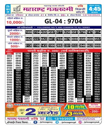 Maharashtra Gaj Laxmi Lottery Result 12/10/2025