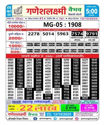 Maharashtra Ganesh Laxmi Lottery Result 12/10/2025