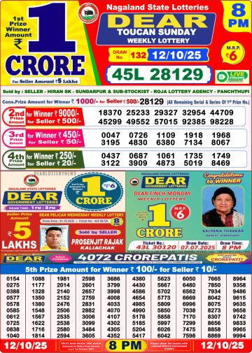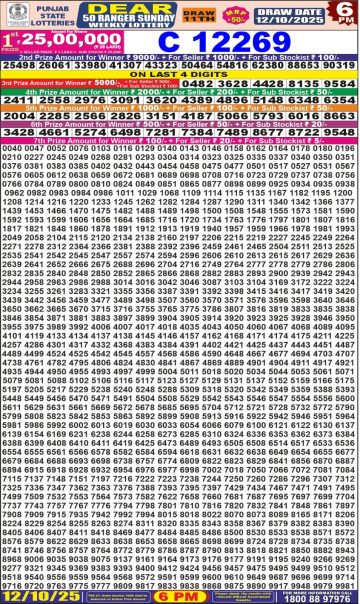 Punjab State 50 Lottery 6PM Result 12/10/2025