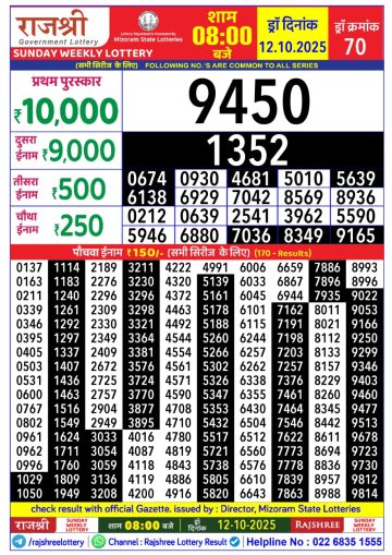 Rajshree 10 Evening 5.40PM Lottery Result 12/10/2025