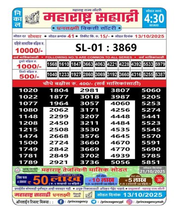 Maharashtra 4.15PM Lottery Result 13/10/2025