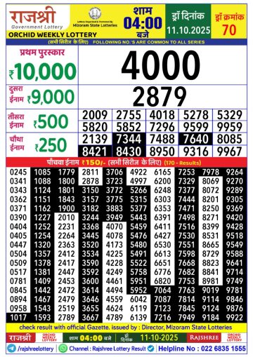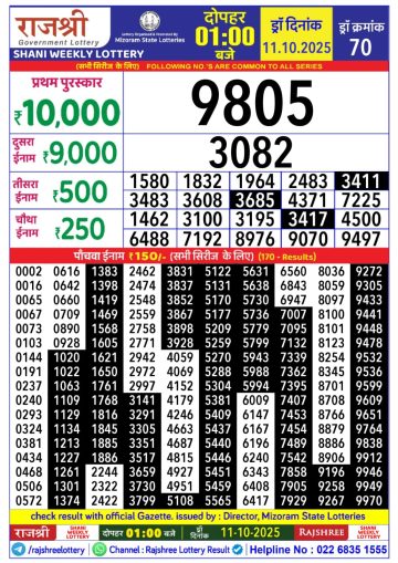 Rajshree Lottery 1PM Result Today 11/10/2025