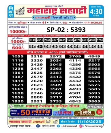 Maharashtra 4.15PM Lottery Result 11/10/2025