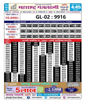 Maharashtra Gaj Laxmi Lottery Result 11/10/2025