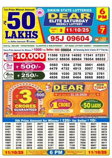 Dear 6PM Lottery Result Live 11/10/2025