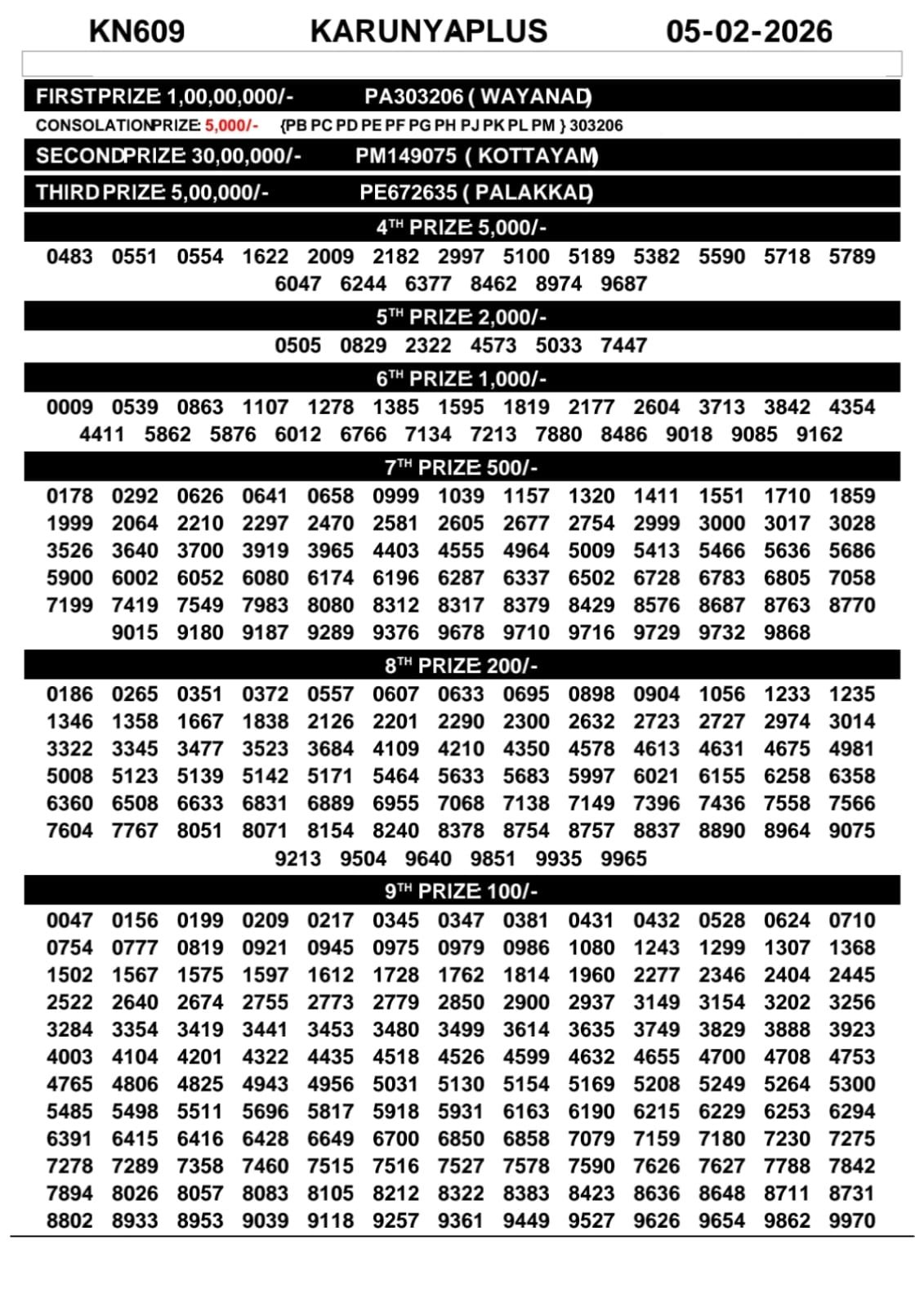Kerala Lottery Karunya Plus Result 3PM 05-02-2026