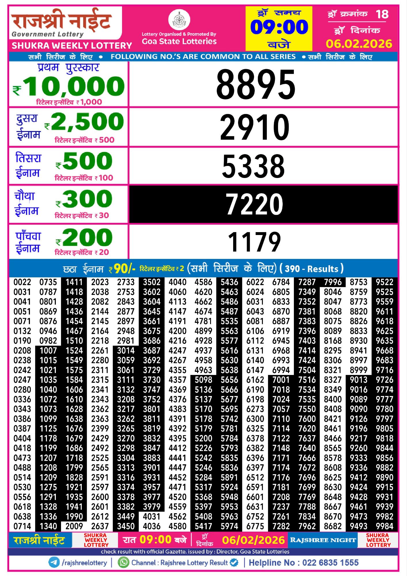 RAJSHREE 10 EVENING SHUKRA Weekly Lottery Result 06-02-2026