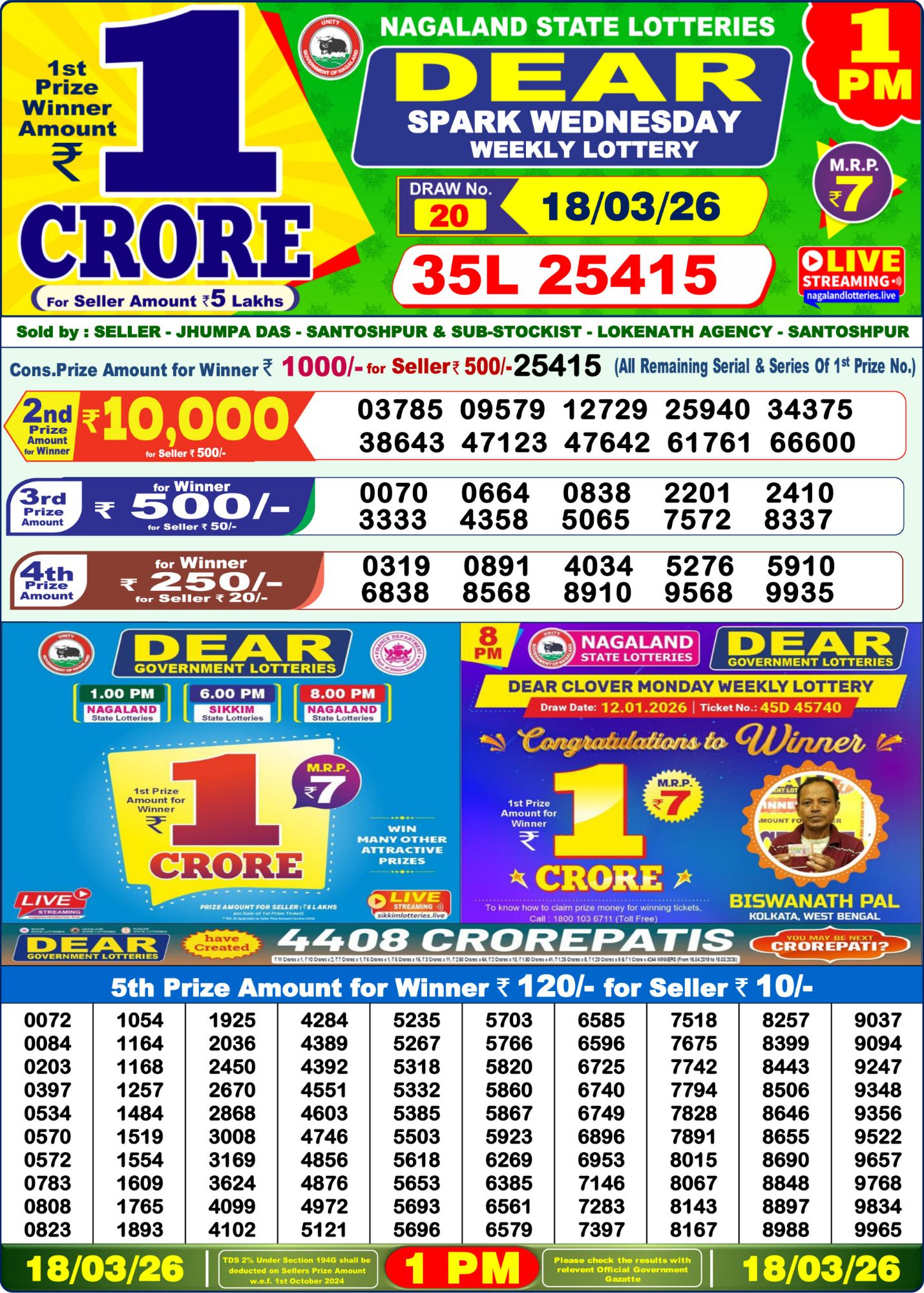 State Lottery Results for 18-03-2026