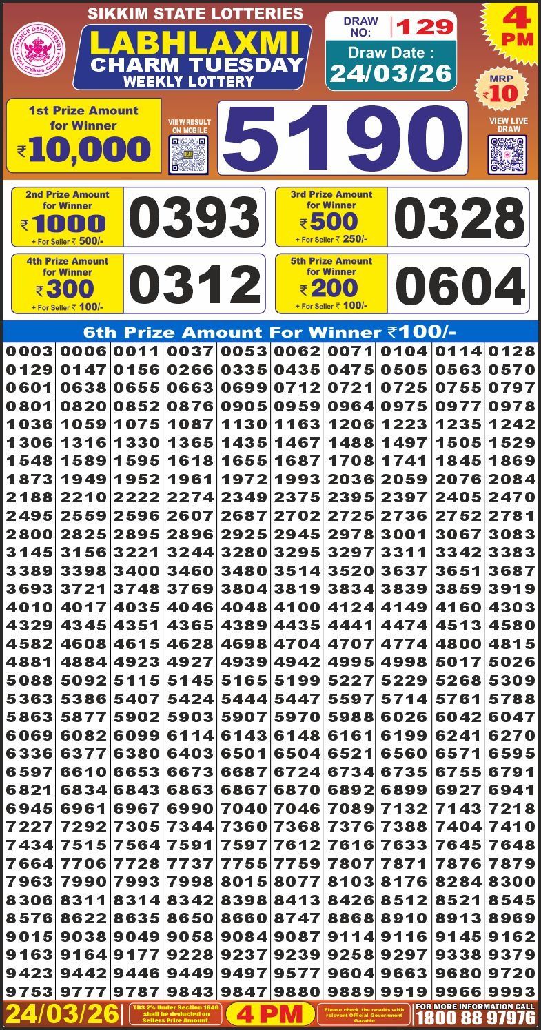 Labh Laxmi Charm Tuesday lottery result 4pm 24-03-2026