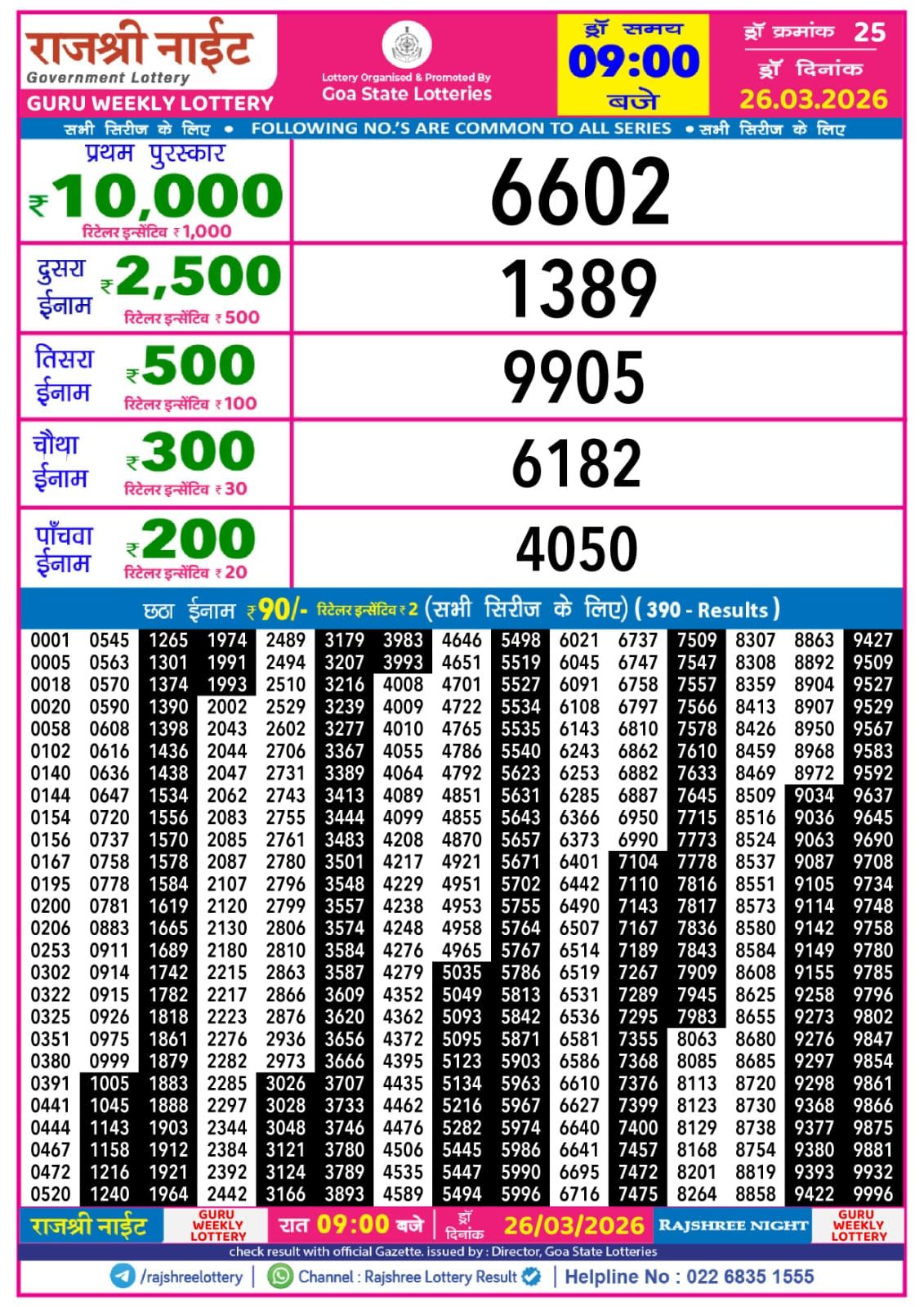 RAJSHREE GURU Weekly Lottery Result 26-03-2026